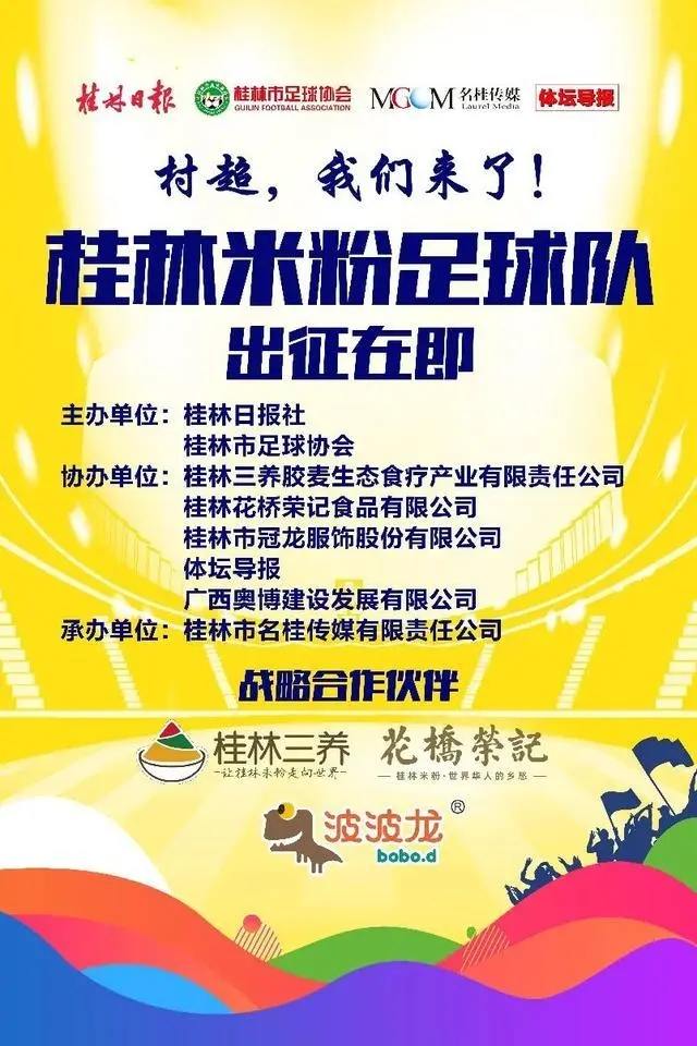 “桂林米粉”足球队首批名单公布,桂林米粉著名品牌“桂林三养”及“花桥荣记”夺得球衣广告冠名权