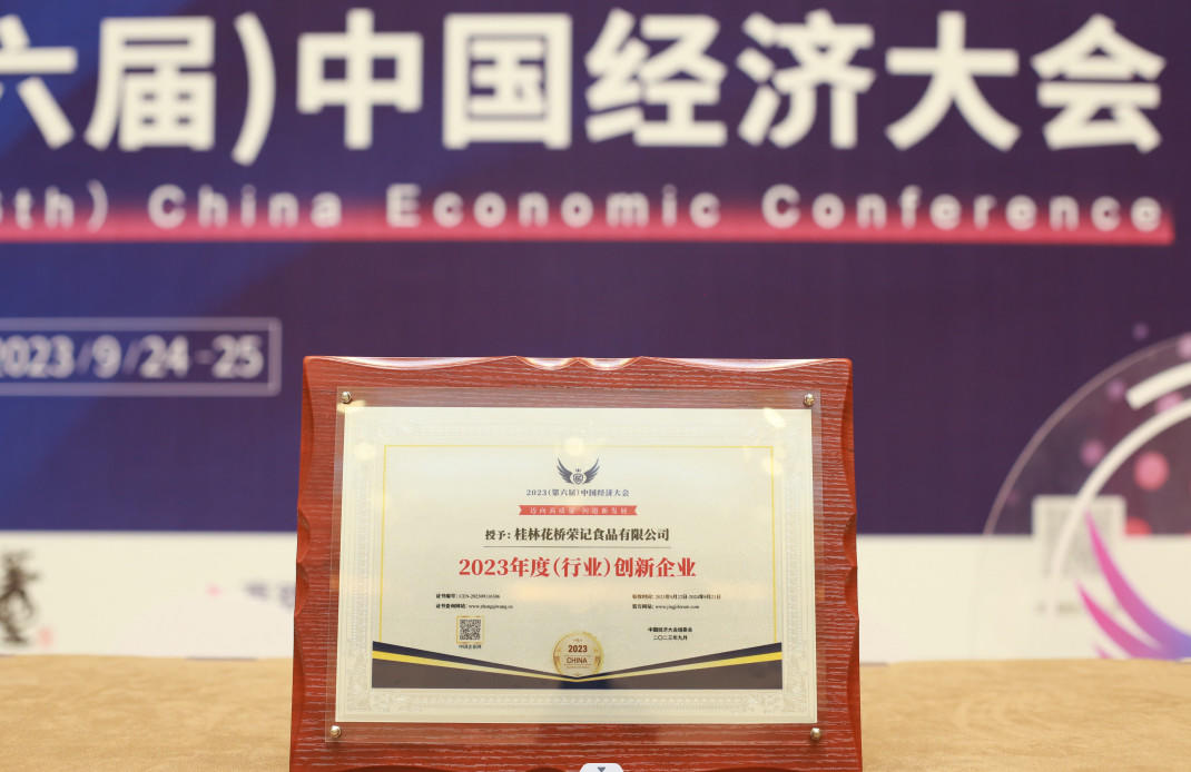 在2023年9月25日于北京举行的2023(第六届)中国经济大会上,桂林花桥荣记食品有限公司荣获年度行业创新企业奖。该奖项是对于公司在食品制造业领域的卓越贡献和持续创新的肯定。